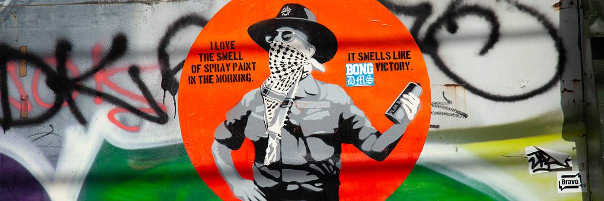 “Scholars of the category expressed similar views. Jaime Rojo and Steven P. Harrington, co-founders of the online street art community Brooklyn Street Art, stated that while graffiti art should be generally viewed as a distinct category due to its focus on lettering and authorial expression, the bounds of street art are more aesthetically slippery. “It may borrow heavily from advertising, branding, traditional mural making, and pop culture aesthetics or methods of creation and dissemination,”…