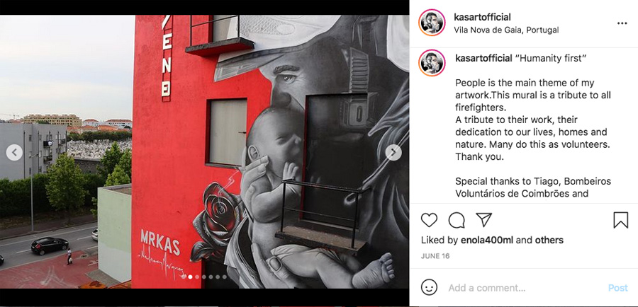 His personal tribute to firefighters, he painted this photorealist piece in Vila nova de Gaia, Portugal.