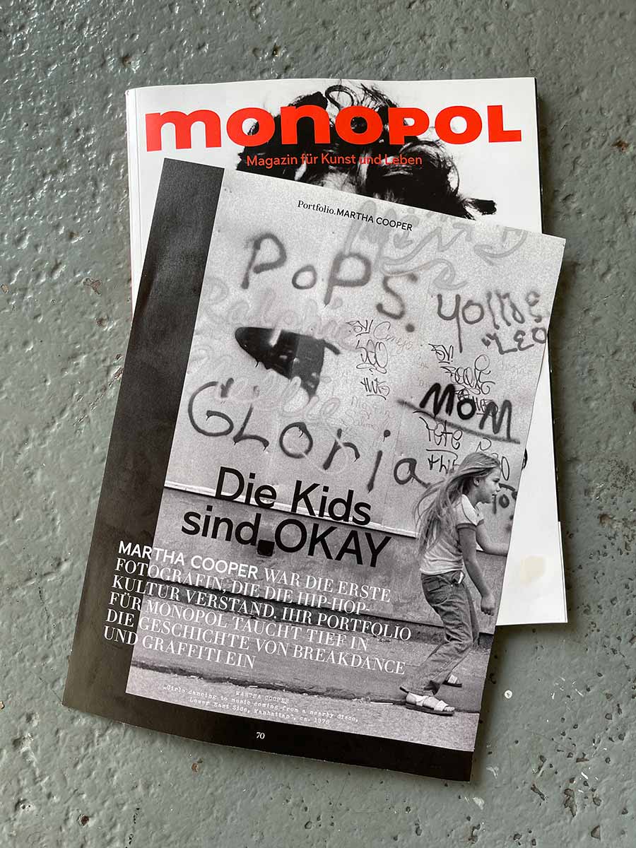 “Her voice on the phone is friendly and warm. But Martha Cooper, this is clear, does not want to be bored. Naturally not,” begins journalist Silke Hohmann in her article for Monopol.
