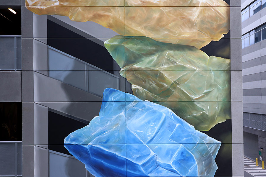 “The mural depicts the balancing of different colored stones to represent the diversity of the individual,” says Keer of this project where he collaborated with Cass Contemporary and Water Street Tampa.
