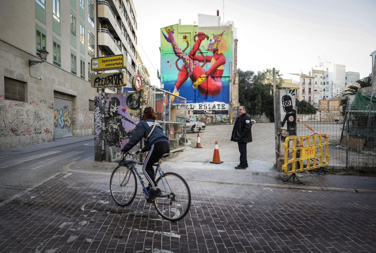 “I am very happy with how the Mural turned out,” says Marcos Chelo aka Akimbo, of this new mural, his first large format, in Valencia, Spain. A tribute to trans people in general and to Margarida Borrás in particular, this multicolored deity of style is likely more a feature of Akimbo’s modern tastes and imagination than what Borrás wore in the 1450s, where the prized yet persecuted beauty is said to have visited many a home of noble society in Valencia.