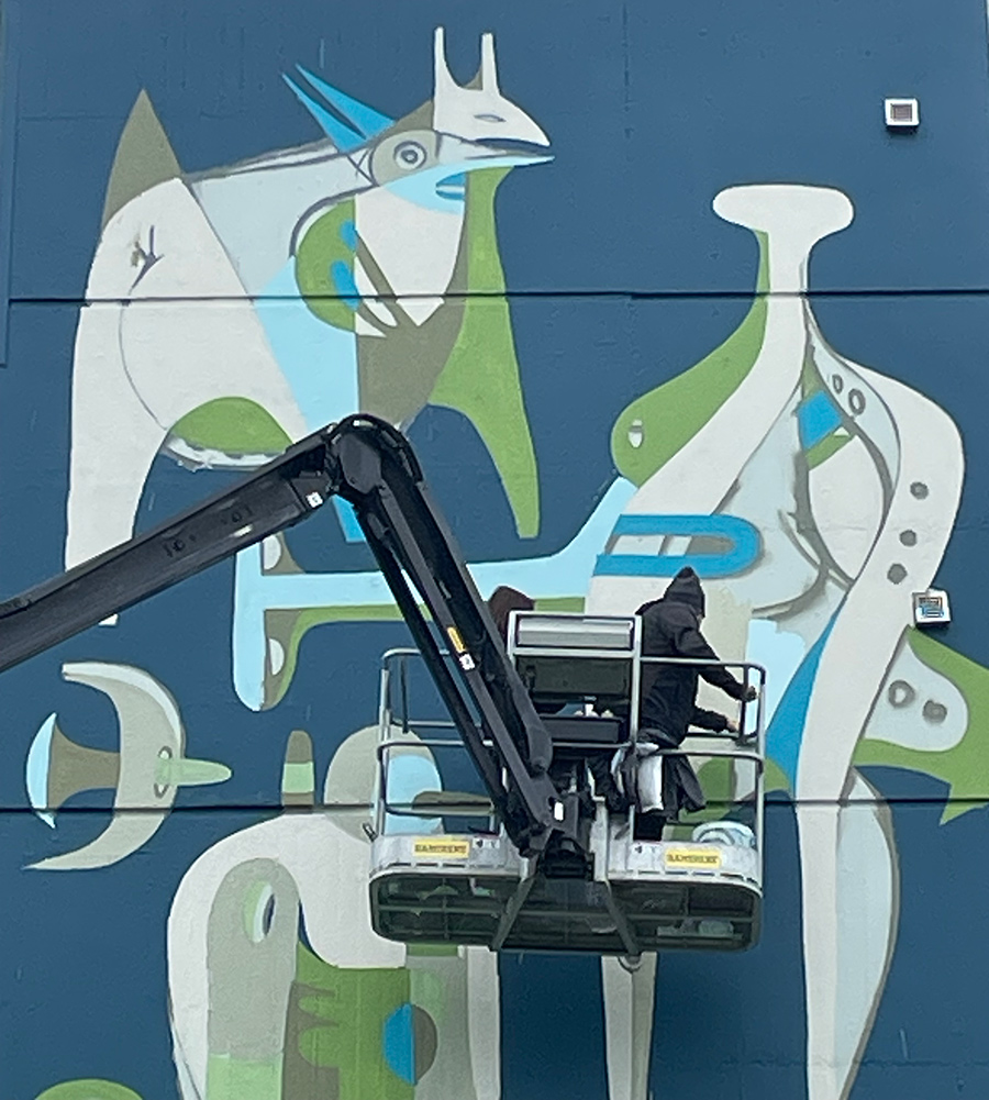 It is a pleasure to witness the artistic journey of Doze Green, and to see how it intertwines with the pulsating rhythm of life, art, and this modern city so far from his own. With his language of symbols and iconography, Green nods to the rich historical Nordic lore surrounding Norway’s natural wonders with much respect. The title also indicates that for the artist, the mural captures supernatural energies and mythic storytelling – through a lens of abstraction. In this context, the new work reads as an amalgamation of historical roots and contemporary vocabularies – and a reflection of the authentic voices of these streets.