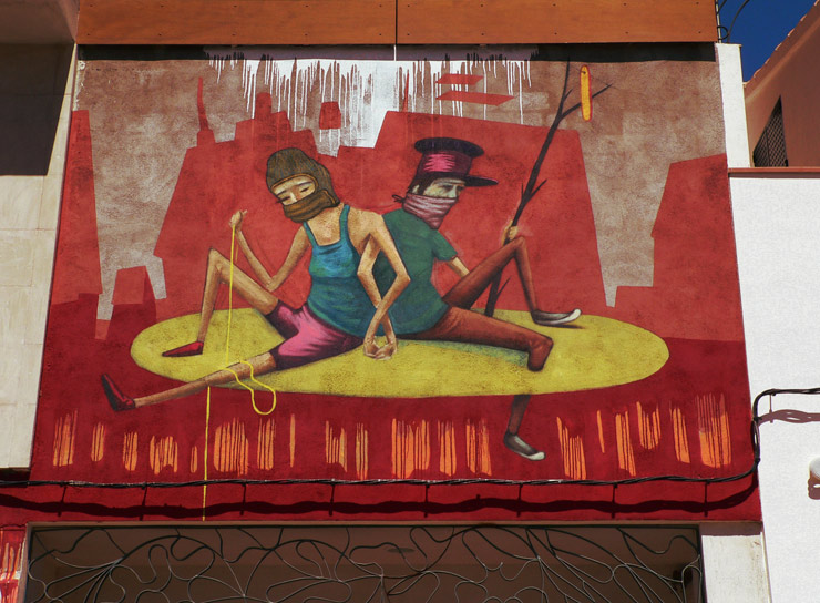 Coming up during the third weekend of July will be the second installment of MIAU (The Unfinished Museum of Urban Art) in the tiny town of about 325 people named Fanzara, Spain. Begun by local artists and with a tiny budget from the local council, more than 20 Spanish and a handful of Italian street artists took part in the grassroots festival the first time around last summer, transforming homes and buildings in this aging municipality. In advance of the new paintings we bring you images of the current murals as shot by Lluis Olive Bulbena, who offers his personal account of visiting the town and getting a tour from MIAU co-founder Javier López and artist Ana Pez.
