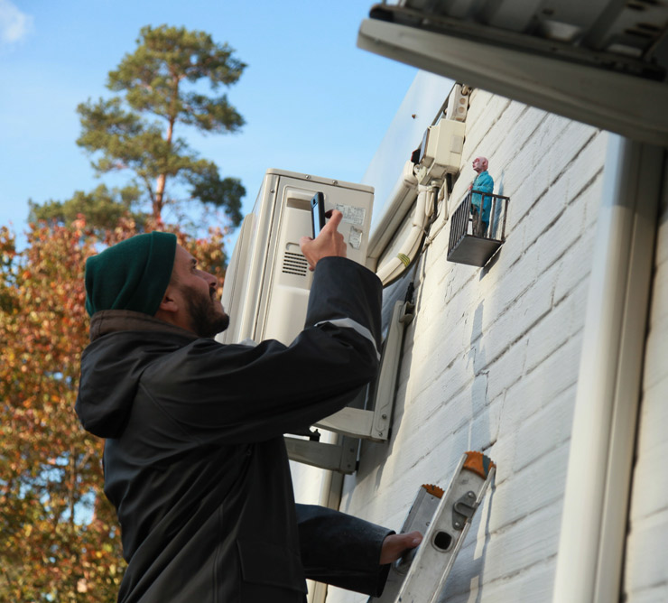 Isaac Cordal. Detail of a larger outdoor installation for the Art Mile. Urban Nation Museum For Urban Contemporary Art. (photo © Jaime Rojo)