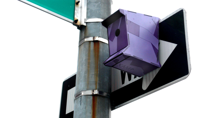 And here we move to a British invasion of sorts with Geishas and Primates from Hush and K-Guy respectively.  XAM has been installing some pretty cool looking bird houses around town equipped with LED lights on their porches that illuminate when the sun sets. Infinity and VUDU’s pieces for the Showpaper box project adds to the conversation on the street with a beaming signal tower atop the box.