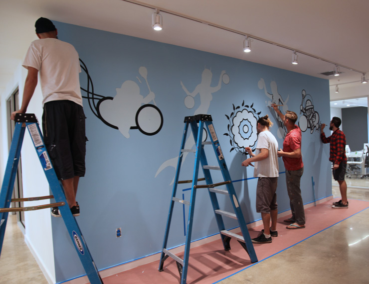 Pichi & Avo at work on their mural at the Hard Rock Stadium in Miami. Wynwood Walls 2016. (photo © Jaime Rojo)