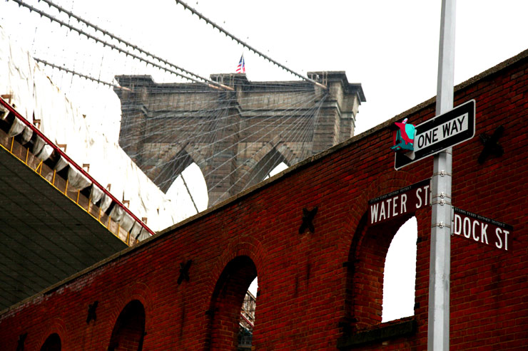 Brooklyn Street Art: Your method of installation; using a custom designed utilitarian “Swiss Amy knife” all-in-one tool, leaves the unit resting upon a sign. Why not make the installation more permanent?