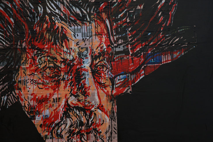 This is not to say that Reed is running from possible controversial material or opinion: Poland stencilist M-City is without doubt critiquing the oil industry with his oil barrels flying through the sky and tankers in the sea, the UK poet Robert Montgomery’s piece addresses topics like the definition of modernism, race, and social equality, and Australia’s Fintan Magee’s very large mural diptych obliquely references rising sea levels and man made environmental degradation.