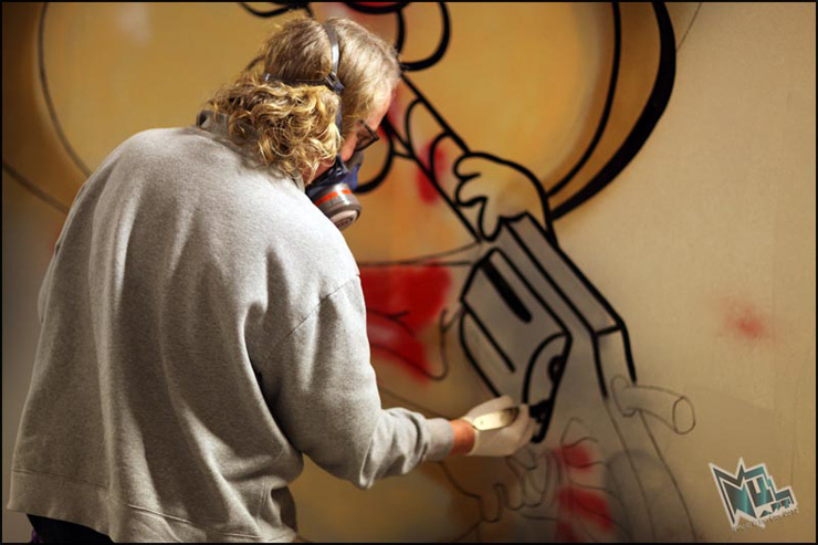 Ron English at work on his indoor installation. (photo © Ian Cox)