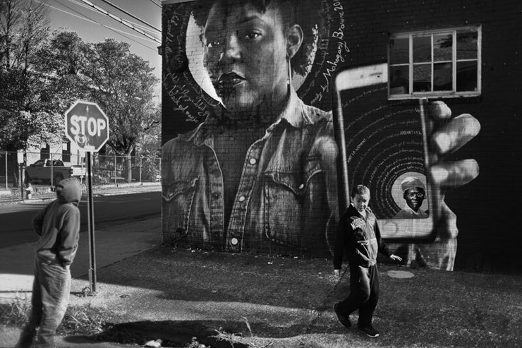 The character in the piece is my good friend Troy, who is from Cherry Hill. Troy has talked to me a lot about the area’s history, and he encouraged me to do a Wall Hunters piece on the side of the abandoned Mt. Winan Projects.
