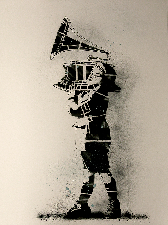 Dolk goes old school with this stencil subject and deliberately mucks it up for effect.