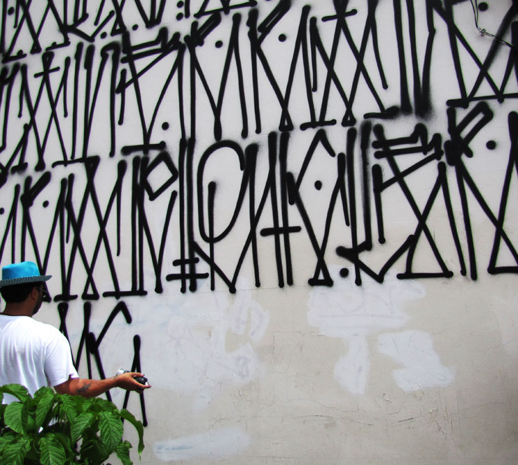 Dr. Lakra at work on his wall. Hecho En Oaxaca. Oaxaca, Mexico. July 2013. (photo @ Roberto Shimizu)