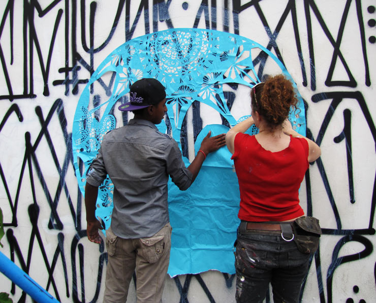 Swoon. Installation in progress in collaboration with RETNA. Hecho En Oaxaca. Oaxaca, Mexico. July 2013. (photo @ Roberto Shimizu)