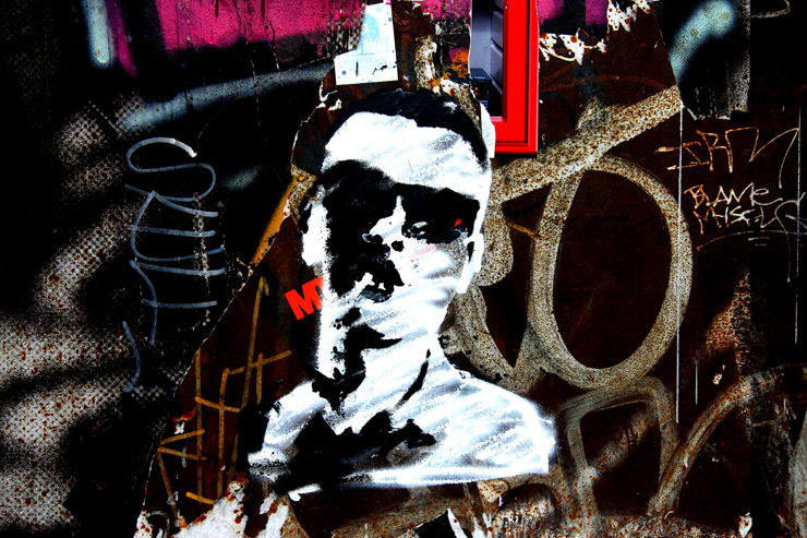 Most people these days know of a stenciled rat as being a Banksy thing, that too could be blamed on the media in general.  I too am a fan of Banksy’s work, back before you had to either stand in a line to get a print or pray you win the lottery that goes into acquiring one these days.  The reason for all the people taking pictures is the hype that surrounds his pieces, most of these “photographers” would not even look twice at other graffiti that could accompany the wall, that could very well be a known graffiti legend.  I tend to look at some of the photographers taking shots to say they have actually seen a piece in person and the other half are going to upload photos to create a new set of coffee mugs and mouse pads to be sold on Ebay.  The “Guess Who?” on the wall was a comment on various headlines and such you constantly see.  For every 10 articles of “OMG new Banksy on wall in such and such”, turns out only about 1 is real.  Almost anything stenciled on a wall these days will have some amateur journalist drumming up web hits by just putting Banksy’s name in a title.  That is my personal opinion and reason for the piece.” ~ Enomeks