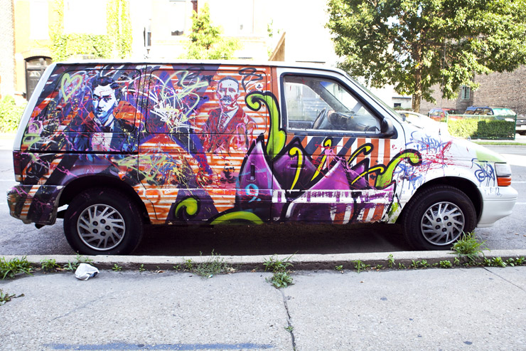 Last weekend for the CresFest and NorthSide Open Studios artist Jon Burgerman was invited by Brooklyn Street Art to paint on a car. We forgot to tell him to get dressed first. Little details like that escape him.