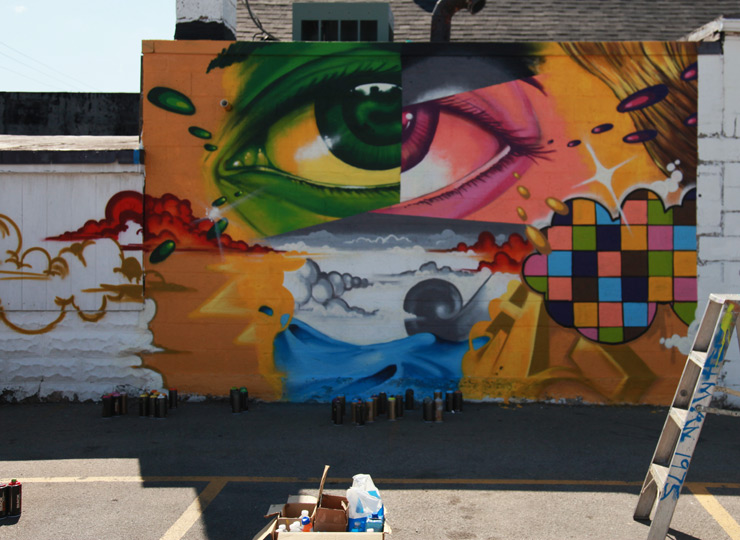We don’t know for sure if it was our current funhouse mirror atmosphere that drove the Wall\Therapy festival in Rochester, NY to choose this years’ themes. It may simply be a way of organizing artists whose work reflects these notions back to us and to illuminate one specific growing trend in street culture and murals.