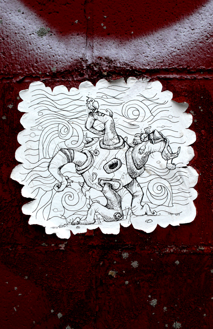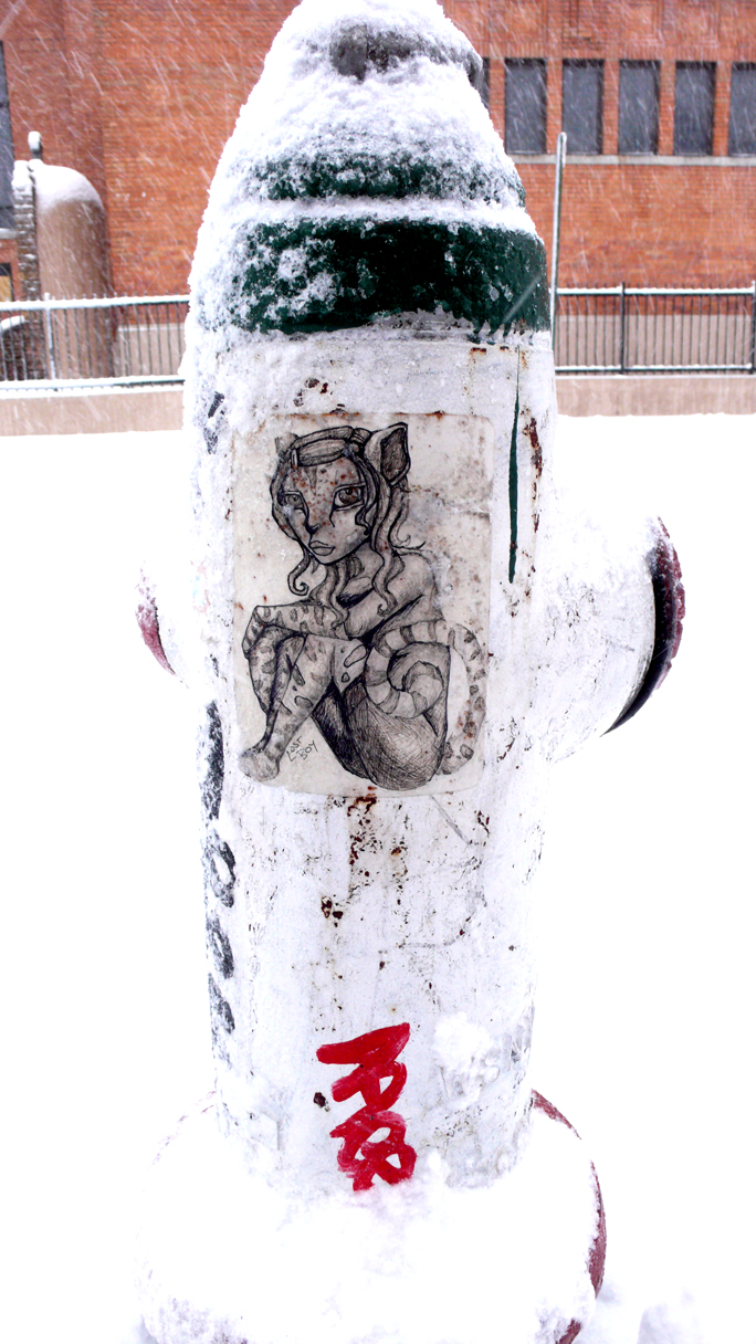 Yes, she looks a little underdressed for this kind of weather. Lost Boy (the artist) puts out small original pencil  or pen drawings with fantasy/mythological imagery (photo @ Jaime Rojo)