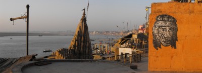 Street Artist Hugh Leeman, whose work you may have seen in Lower Manhattan, is currently in India, and he sends this dispatch about some wheat-pasting he’s been doing there: “These pieces I recently put up in Varanasi, India just as Holi festival began. They are on the ghats near the Ganges river.”