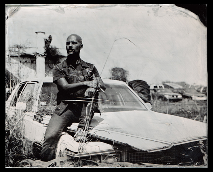 In these images from Austin, Texas and New Orleans, she begins her portraiture series with what we hope will be many dispatches from the road between now and June, when she expects to complete this exploration of places and people. When looking at these images, it is helpful to recognize that they are not from an app on an Iphone – the wet-plate process was invented around 1850 and begins with bromide, iodide or chloride salts dissolved in collodian – and gets more complicated from there. The laborious process requires a thoughtful approach to the subject, and the results can be stunning, mythic, or even heroic in character and atmosphere in Hasty’s hands.
