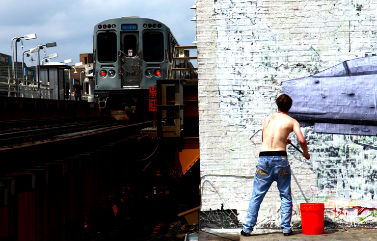 LUDO applies his custom-mixed acidic green goo in Chicago (photo © Jaime Rojo)