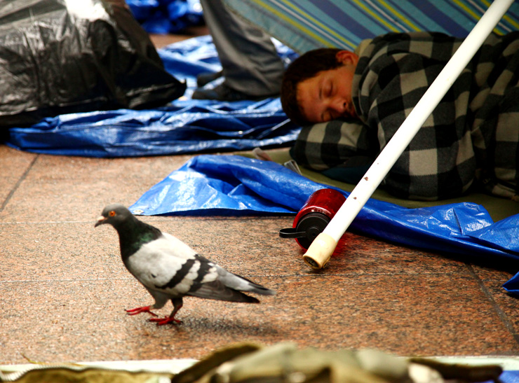 Tough New York pigeons dropping in to lend a wing. Occupy Wall Street. October 14, 2011 (photo © Jaime Rojo)