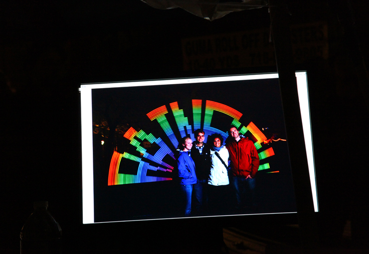 Reid Bingham and Sean McIntyre participated in this year Nuit Blanche New York 2011 in Greenpoint, Brooklyn with their Rainbow Machine. This outdoor installation is the perfect photo-op and you’ll get that special memento to send your family back home in Idaho.