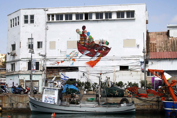 Skount shares a lot of “Fisherman Color” in Tel-Aviv at the Old Seaport. (photo © Skount)
