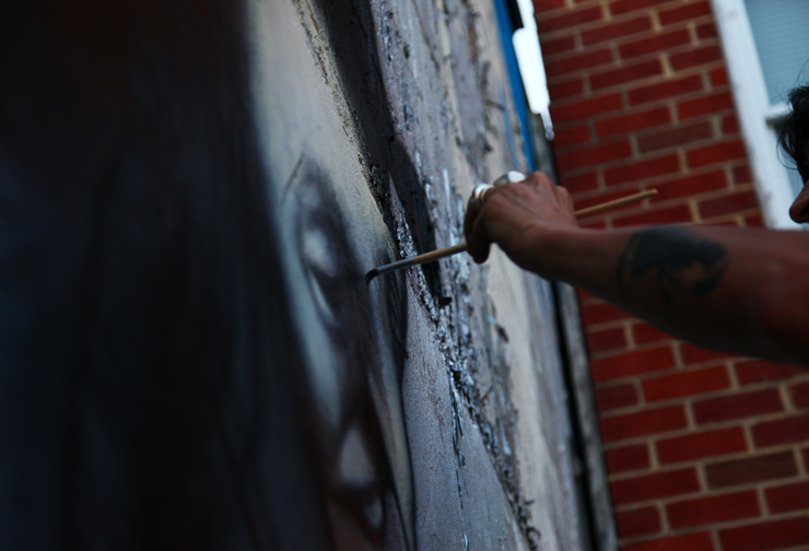 Street Artist Yote sends this tribute to an artist and teacher. “Frederick Brown recently passed away and I wanted to dedicate this mural to him. It is entitled “Flowers for Frederick.” He was best known for his portraits of jazz singers and musicians. I talked to him on the phone this spring in hopes to get advice on how to loosen up my style and not be such a perfectionist from a real expressionist. He was too sick to talk for long but I do know he used to instruct students to complete two dozen paintings in a week and things like that to get them out of their head and into painting”~ Yote