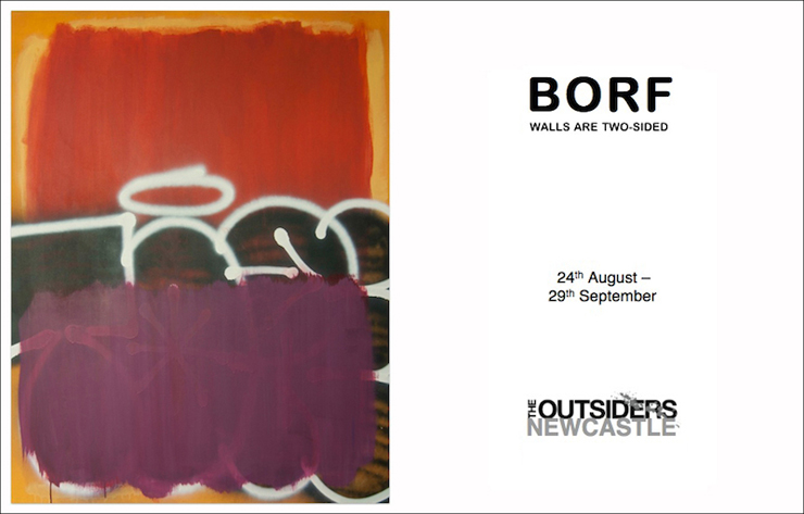 The Outsiders Newcastle invite you to join us on the evening of Thursday 23rd August at the opening party for ‘Walls Are Two-Sided‘, the new solo exhibition by young American artist BORF. The event takes place from 6 ’til 9pm in the gallery at 77 Quayside, Newcastle upon Tyne.