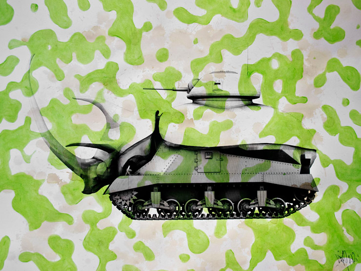Ses premières incursions dans l’art de rue ont eu lieu il y a plus de 10 ans. Il se tourne vers le collage en 2007 afin de maintenir une approche transgressive tout en se protégeant des peines juridiques les plus sévères.