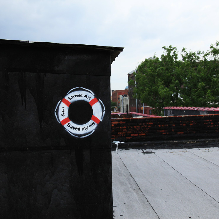 As the sun begins to smite the bejesus out of your average Street Artist who is looking for spots in dirty old Brooklyn, you will also find that a number of the barbeque-ists of this species can become what we like to call “roof cosmetologists”. This means that they apply learned and impromptu methods of paintology to the plain or ugly sections of industrial grade roofs, veritably transforming their appearance aestheticallistically. Armed with lawn chairs, cans, and a 40 oz. (and possibly a grill if somebody wants to carry it), these Street Artists clammer up skinny metal ladders to play some tunes, get some sun, and have their version of a picnic in the park.