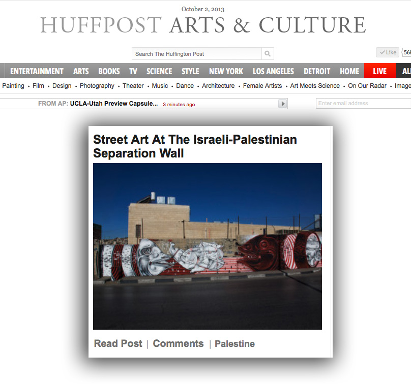 How & Nosm. Main mural in the Palestinian Side of the Separation Wall. Bethlehem, Palestine. September, 2013. (photo © William Parry/MAP)