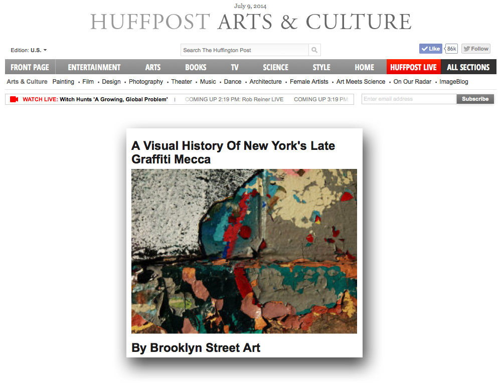Much like a palimpsest, New York is again erasing history to make room for something new. As the ever-expanding cloud of affluence steamrolls across Gotham into the outer boroughs, this urban castle of effluence still stands as a record of the graffiti history that sparked a thousand aerosol aspirations by everyday New York youth – and many international ones as well. Your closer examination of the mottled walls of this former graffiti holy place reveals a peeling façade demarcated by the layers of colors and creative expression that once raced across these walls.
