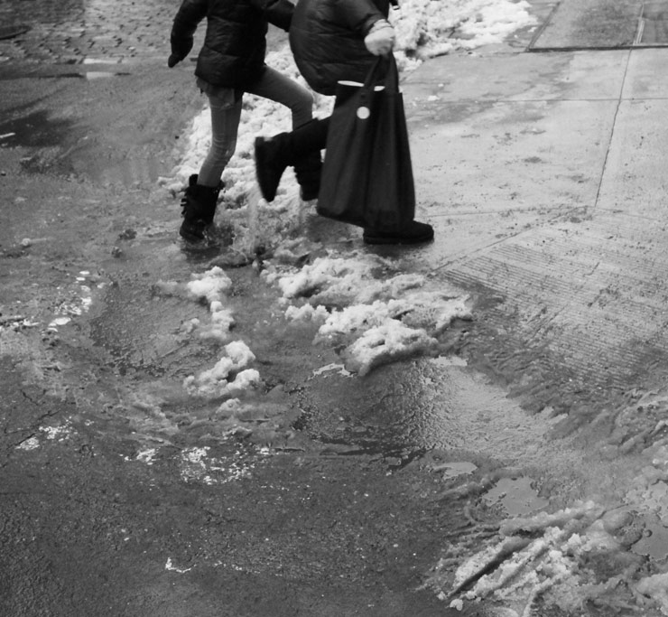 But puddle jumping is not only a necessity for the sleekly shod. New York is a pedestrian city and we are an army of millions – with all sartorial styles, statements, and puddle-hopping abilities. Navigating the sidewalks after a heavy snowstorm requires dexterity, flexibility, caution and a healthy sense of good humor. You WILL do gymnastics. It WILL be dramatic. You WILL not always be glamorous or handsomely dashing. Just try to stay up!