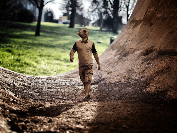 I believe these creatures, which I call “manimals” may cause people to pose questions about them; What are manimals doing within these urban structures? What do they think about our modern cities? Maybe they represent a wild side in that is opposition to the “concrete world” around them? Have they got a different look because of their origins? What do they imagine when watching us and what do we think when seeing them?