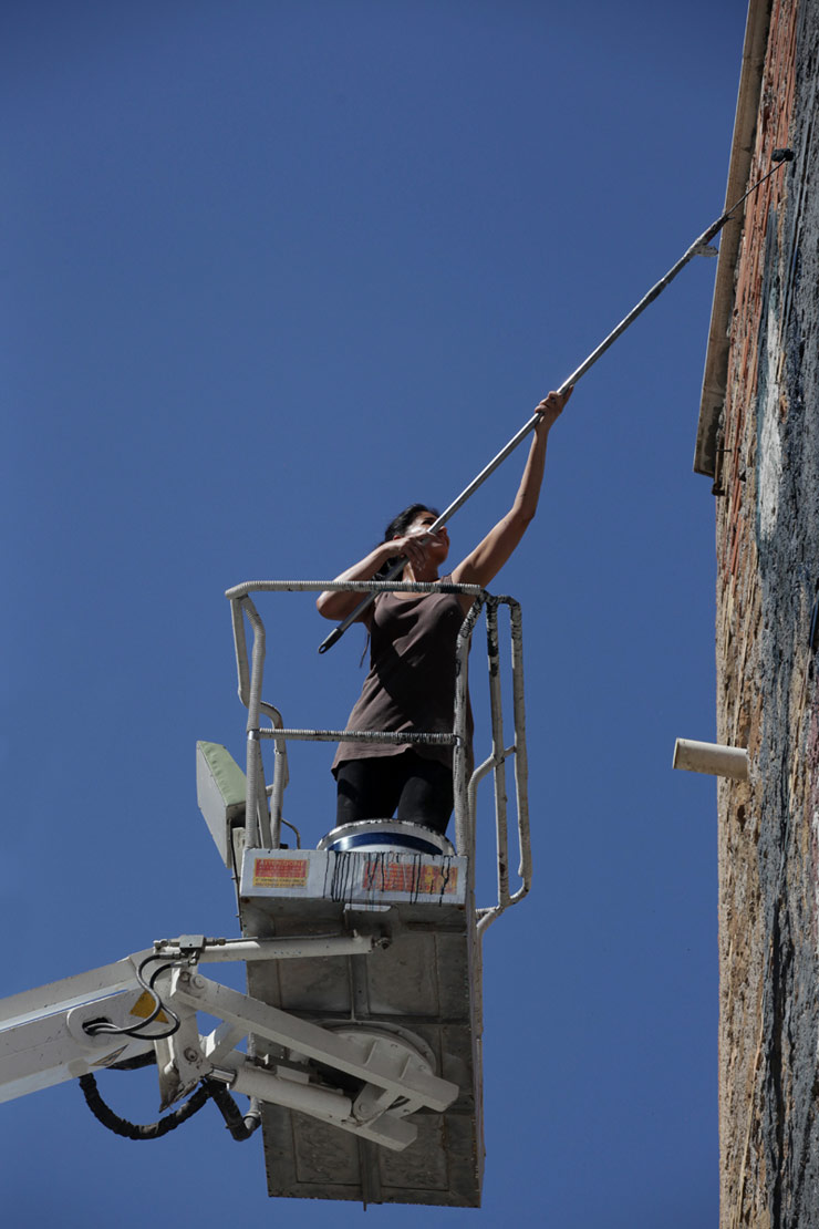 Herakut is in Rome for their current exhibition with Galeria Varsi, “Santa Miseria”. A quote they use on the gallery wall is also repeated here on the exterior wall of a building for this new mural in Tor Pignattare . The duo like to collect personal stories and re-tell the moment they were relayed to them.