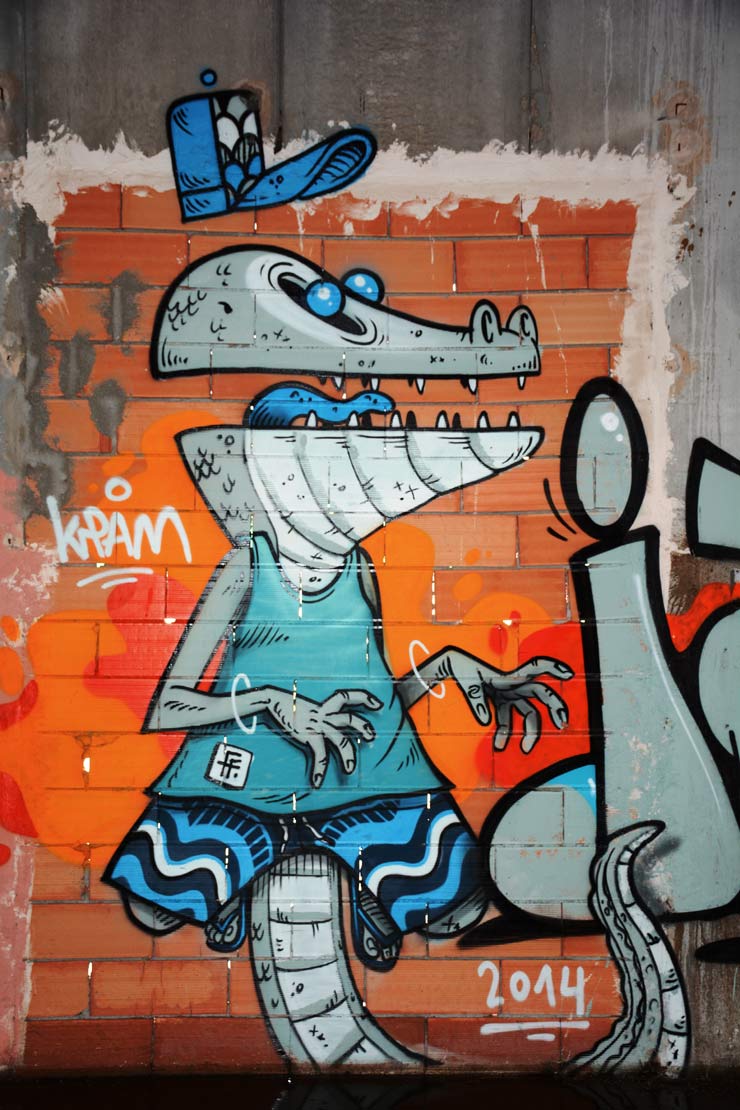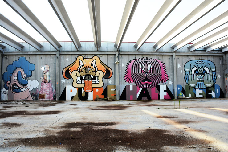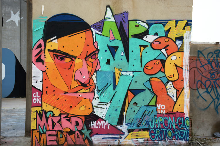 It’s a cathedral of characters, this abandoned furniture factory forty kilometers outside of Barcelona. Cartoons, illustrations, portraits are everywhere; a curious collection of aerosol spray pieces that highlights the popularity of the animated and exaggerated personalities among graffiti and Street Artists in this region of the world.