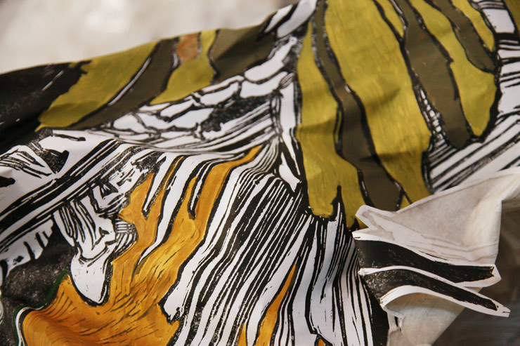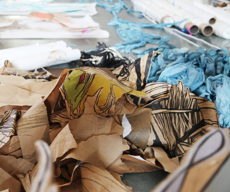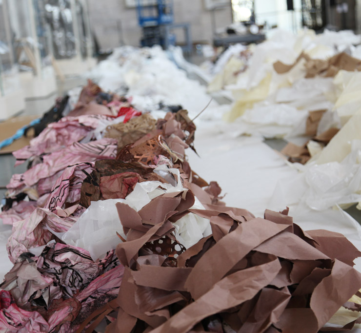 Swoon at work making Thalassa’s dress. “Thalassa” Installation in progress. Detroit Institute of Arts. Detroit, Michigan. September 2016 (photo © Jaime Rojo)