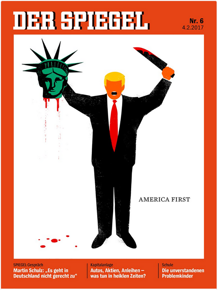 And here they are popping up again on major magazine covers – still nailing the essence of the message with the simple statement of an icon. One look and you know what it’s saying, and in the case of Trump, the view from Europe scary.