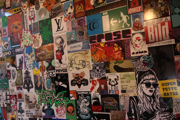A board covered with stickers at Urban Nation Museum For Urban Contemporary Art in Berlin. (photo © Jaime Rojo)