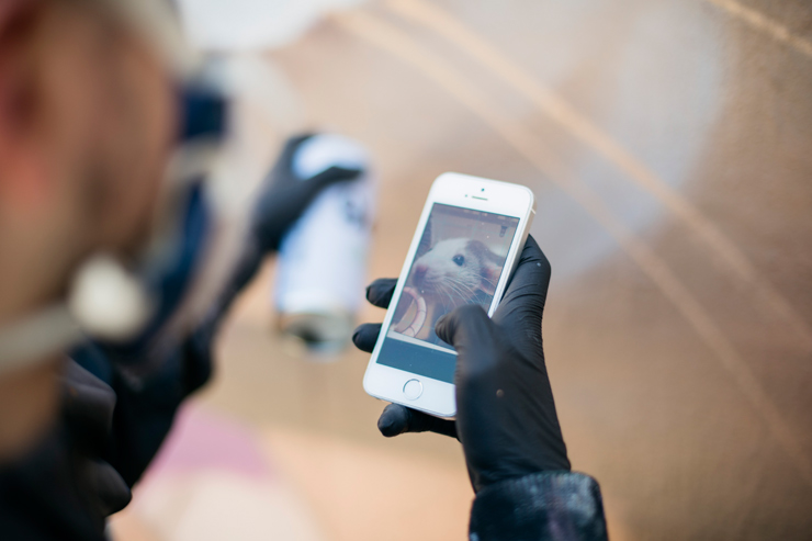 Spanish graffiti writer and tattoo artist Xav gives his own literal interpretation of the saying ‘library rat’ here in his new mural for Project 12+1 in Barcelona. Beginning with graffiti as a teen in Asturias (northern Spain) in the mid 2000s Xav has since honed a photorealist style on walls that has given him many commercial opportunities and taken him to participate in Street Art and graffiti festivals.
