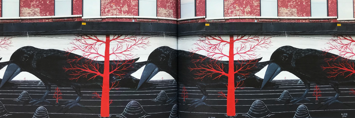 Klone is prowling between states, transitory and without volume, beams of light and color washes and flickers of memory, or false memory. The Ukrainian born, Israel bound Street Artist is as good with the unforgiving street as the undefined gallery, muting features from common characters and tracing shadows, summoning foxes, crows, cats as guardians and confidants.
