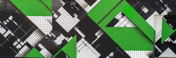 Dutch abstract painter Zedz likes to think of his new work in Erie, Pennsylvania as attempting to create a symbiosis. A former graffiti writer, he says that it is the architecture that has inspired him here, and his draftsman eye may be informed perhaps by Mondrian as well. A layering of geometries are placed in … Continue reading Zedz and Shadings of Mondrian for New Mural “Erie”