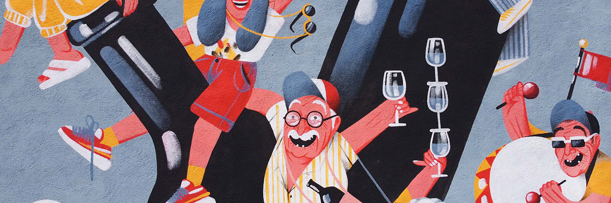 A certain sunkissed and saucy lust is coupled with all manner of vice for the frolicking senior set that is often featured in scenes by the muralist, painter, and illustrator Marina Capdevila from Barcelona.