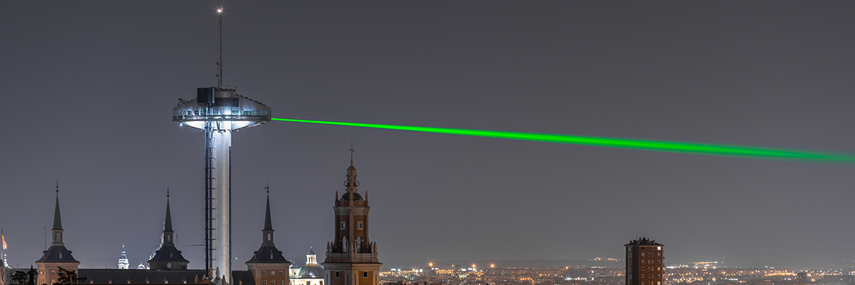 As dusk fell last week citizens saw his newest beams of light bursting from the iconic “Mirador de Moncloa”, causing some on social media to evoke Star Wars comparisons. Perhaps it was the green beams that recollect the early personal computers of all green text on black backgrounds, but to see them streaming steadily, connecting north and south across 10 kilometers, it redefined space and residents’ perceptions of it perhaps.