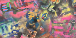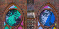 An air-filled rectangular pointillism with motifs of hatchings and symbology borrowed from folk art and African patterning, his portrait subjects are immobile against a sky of repeated rains. The Italian-born, London-based painter self-named ALO (Aristide Loria) has been on the street art scene here for about a decade, and his style has remained his own.