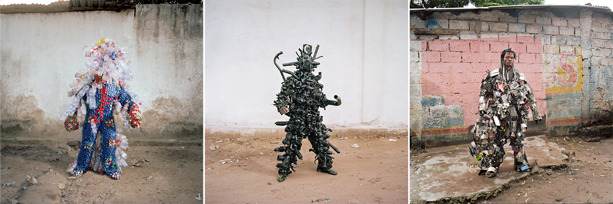 Photographer Colin Delfosse‘s series Fulu Act showcases the unique and innovative ways in which street artists in Kinshasa, the capital city of the Democratic Republic of the Congo, repurpose discarded materials found on the streets, like wigs, wires, soda cans, and bottle lids, into striking costumes that raise awareness of environmental issues. Delfosse’s images highlight the potential beauty of recycled street fashion, which has gained popularity in recent years as a way to reduce waste and promote sustainable fashion practices – bringing attention to larger issues of sustainability and consumer culture in Kinshasa.