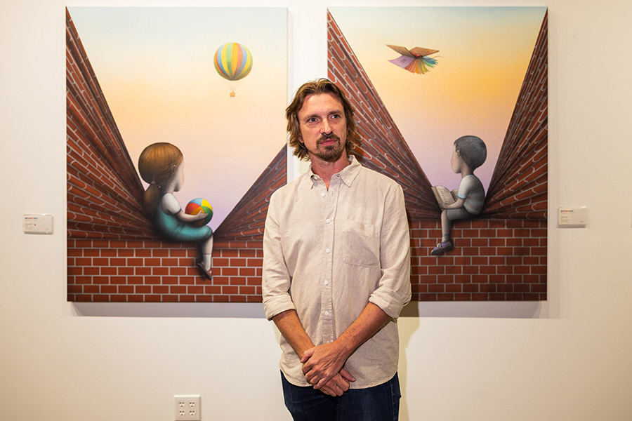 The mystery of each scenario is painted there before you on multi-story buildings in major metropolitan areas. Still, no two are exactly alike, and each requires you to engage your imagination to complete the story. Perpetually on tour for commercial jobs, commissioned murals, or personal adventures, the Frenchman and the Italian say they have overlapped one another 18 times in the last decade, from Shanghai to Buenos Aires, and decided to formalize that long-running dialogue in this collaborative exhibition, “Beyond,” opening September 10, 2025.