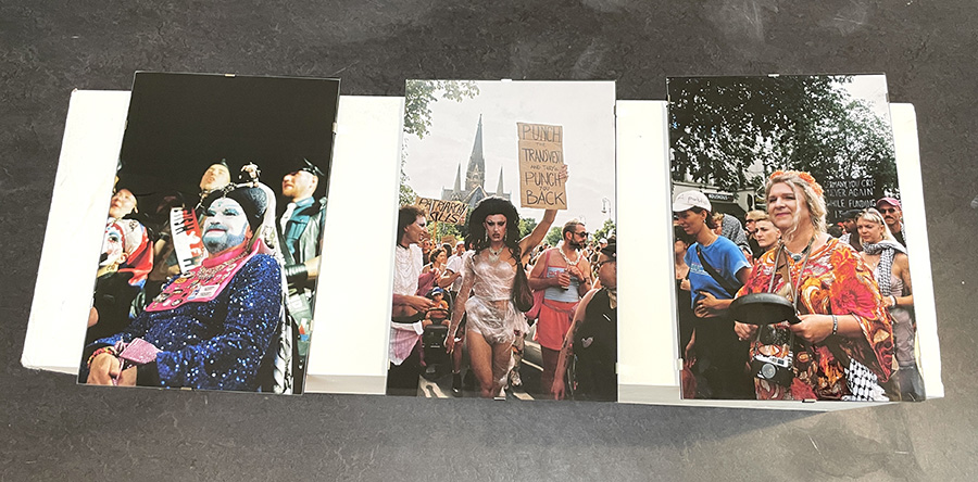 That’s precisely why he went to the archive, sat with the original materials, and made new work grounded in lived experience rather than sensational headlines. His insistence on consent and trust in photographing protests, especially when working with trans folks, is part of the same refusal to flatten people into symbols. He’s acutely aware that much of the public visual language around queerness is still dominated by highly sexualized images, corporate Pride floats, and what he and the sponsors describe as “rainbow capitalism.”