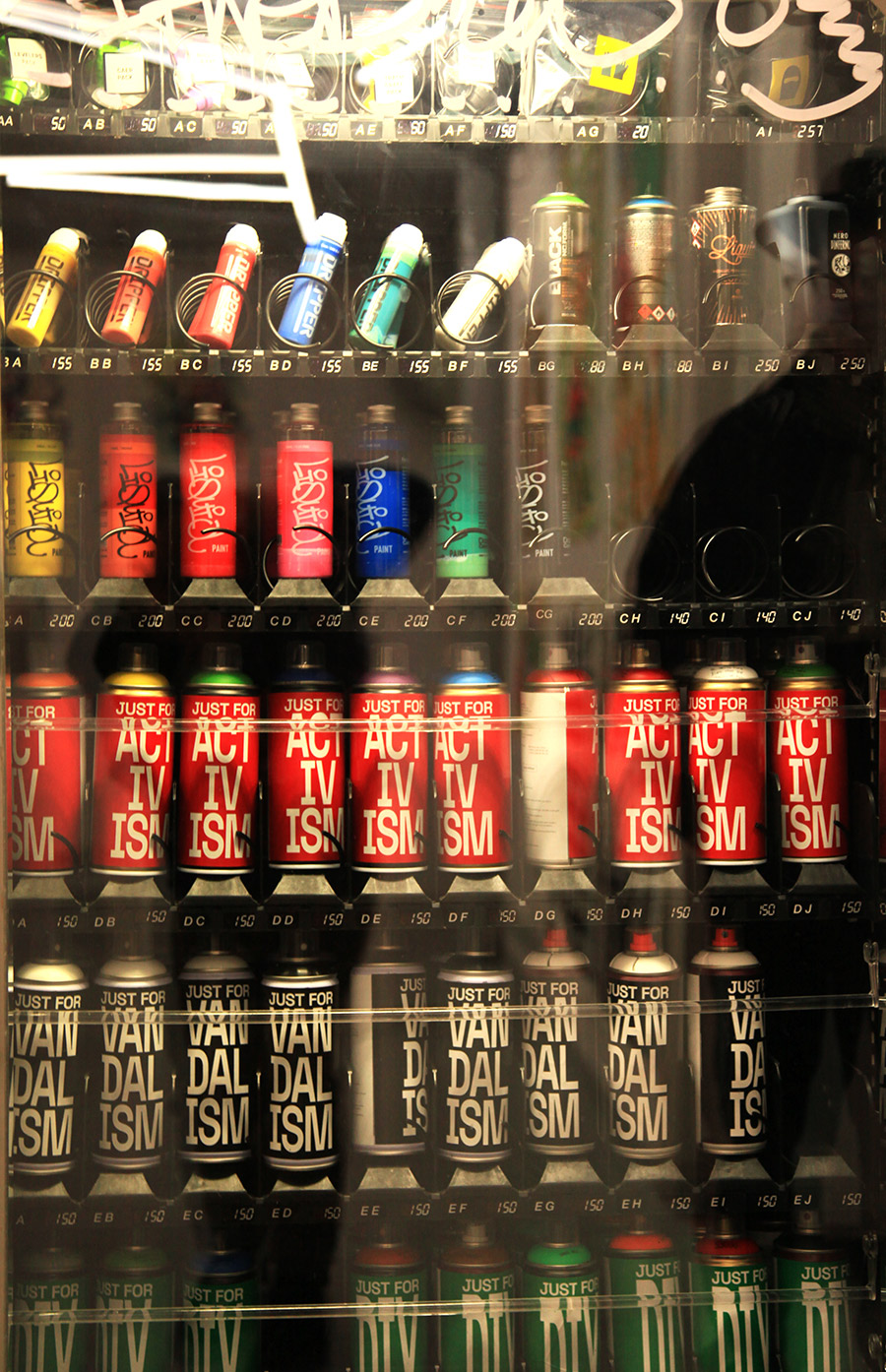 EPOS 257 (Czech Republic) is a conceptual street artist known for anonymous public interventions. His “Graffomat” installation—shown at Urban Pictus 2025—is a vending machine that dispenses spray cans, satirizing the boundary between sanctioned art and illegal graffiti.
